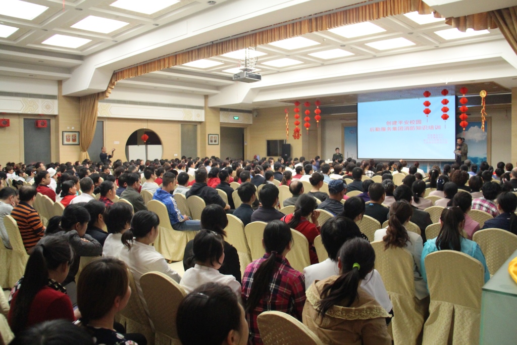 为进一步落实我校“平安校园”创建工作,提高后勤员工的消防安全意识,“平安校园”创建办公室于2015年4月22日下午邀请海淀区公安消防中队八家消防支队陈晨副中队长来校对后勤集团所属饮食服务中心、商贸服务中心、留学生住宿中心、大唐物业等部门,共计二百余名员工进行了消防安全知识培训。