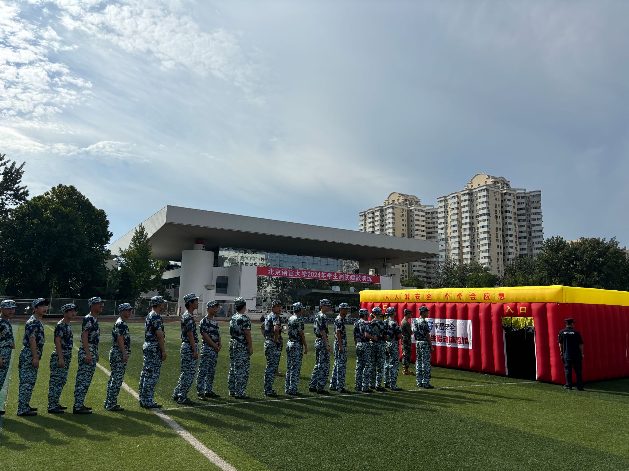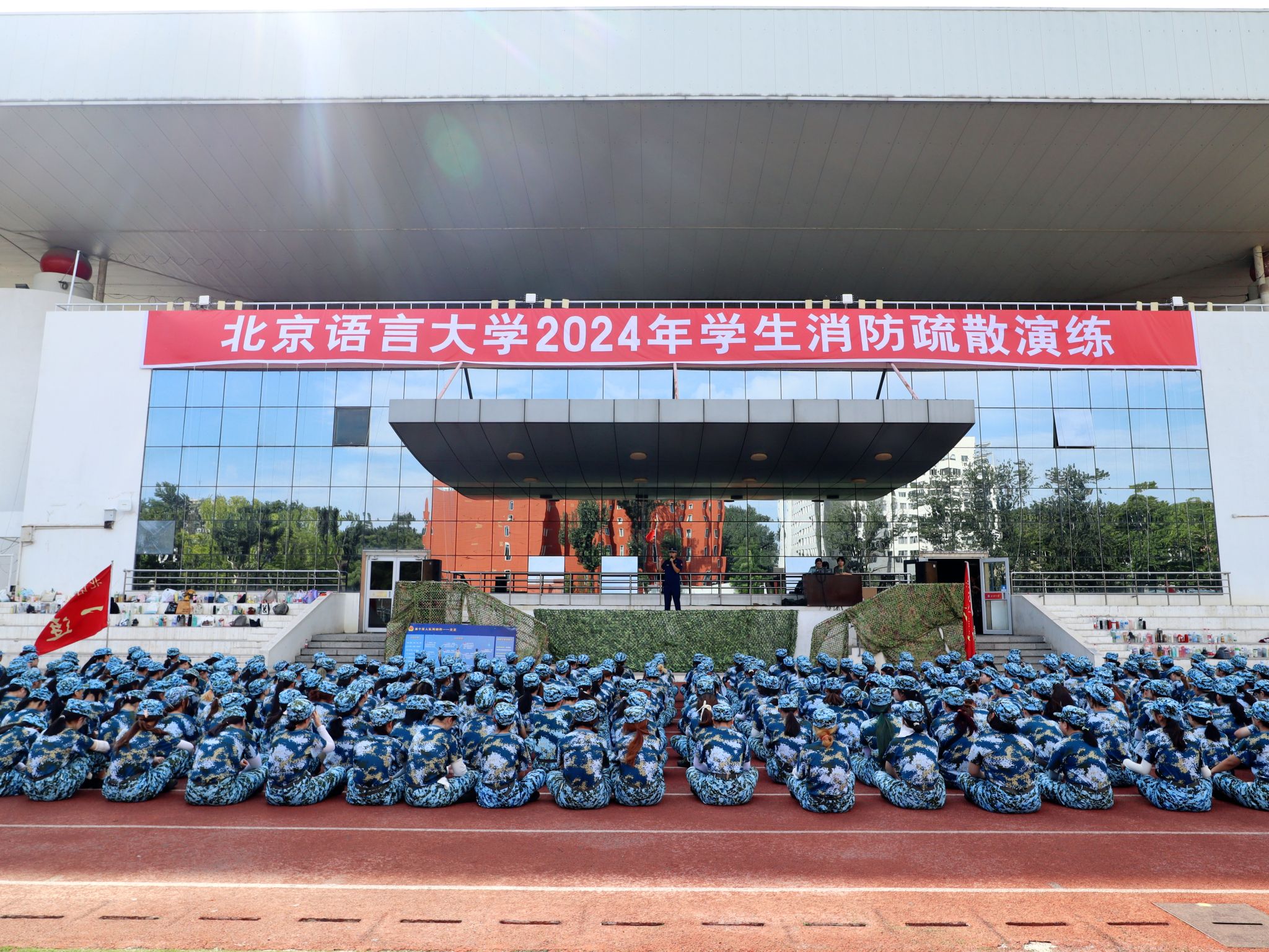 8月28日下午,北京语言大学2024年学生消防疏散演练和灭火逃生培训顺利开展。在保卫处、学生工作部、后勤服务集团的有序组织下,军训各连队指导员、教官、八家消防救援站指战员及1200余名参训学生参加演练。保卫处处长张阳、学工部武装部部长武玉洲出席活动。
