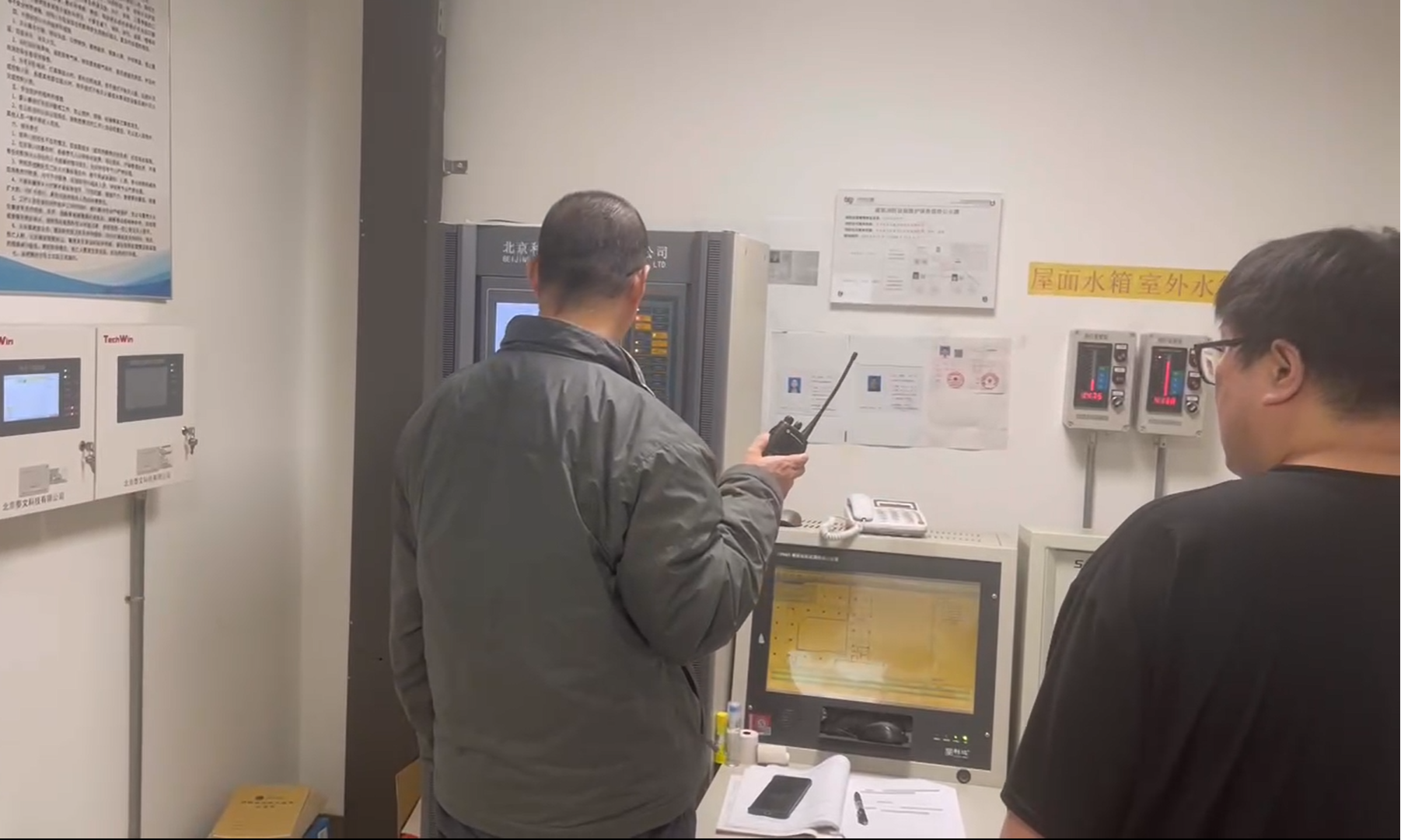 14:00,随着总指挥下达演习开始指令,图书馆三层烟雾升起,触发消防主机报警,控制室值班人员按照“四快”规范程序,立即通知楼层管理人员前去确认,在确认火情无法控制且有人员被困后,迅速报告图书馆安全责任人,启动图书馆应急和灭火疏散预案,同时报告学校应急指挥中心并拨打“119”火警电话。消防系统自动启动,供电中断、消防广播和声光报警响起、卷帘和通风系统启动,馆内老师开始有序组织馆内师生疏散。学校应急指挥中心接警后,立即派出微型消防站应急处突救援人员前去处置。