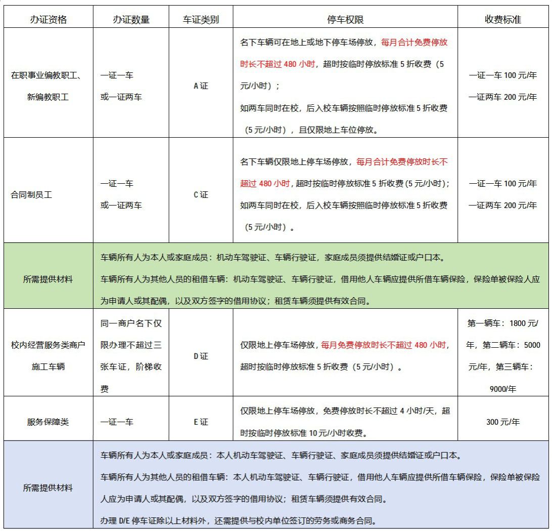 一、校园机动车停车证收费标准及办理要求